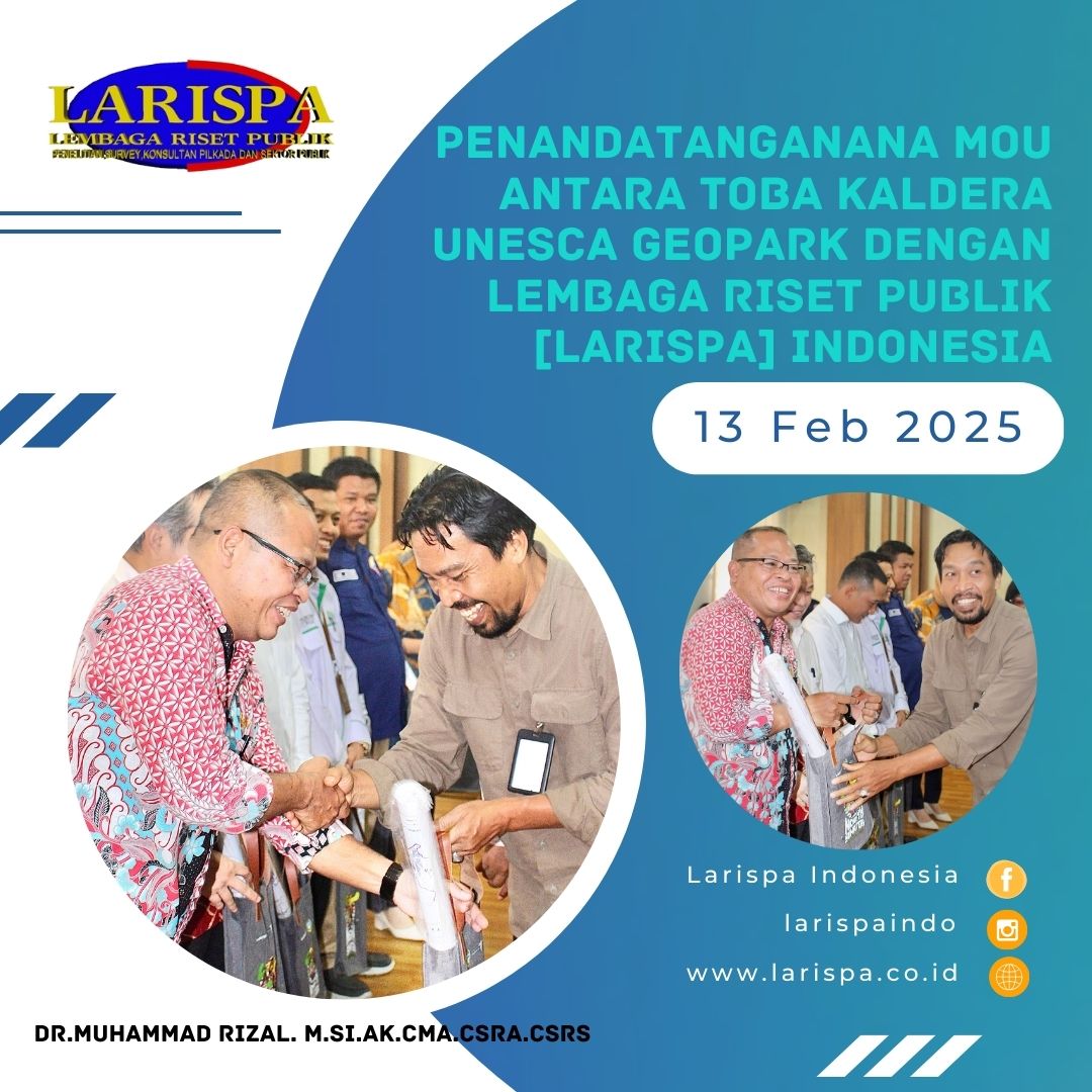 Atas pelaksanaan penandatanganan MOU antara Toba Caldera Unesco Geopark dengan Lembaga Riset Publik (LARISPA) Indonesia.