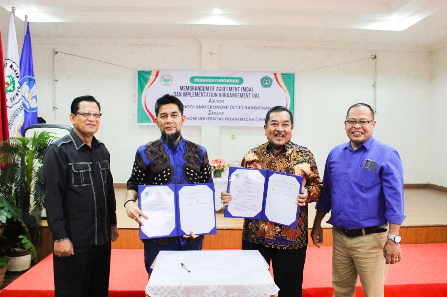 Penandatangan MoA diinisiasi oleh Ketua LARISPA Dr Muhammad Rizal M.Si, yang dilakukan langsung oleh Dekan Fakultas Ekonomi Unimed Dr Hakal Raikal Rahman M.Si dan Wakil Ketua STIE Bangkinang Dr Zamhir Basem MM.